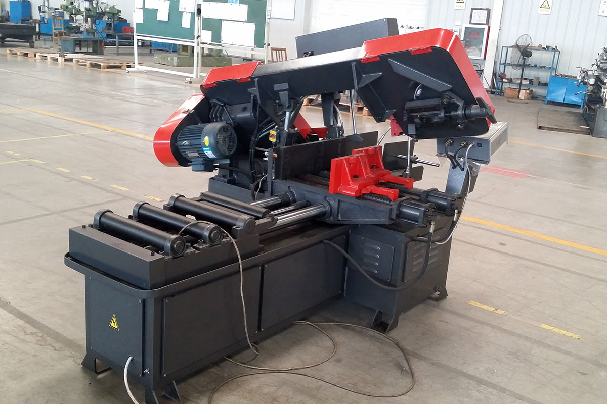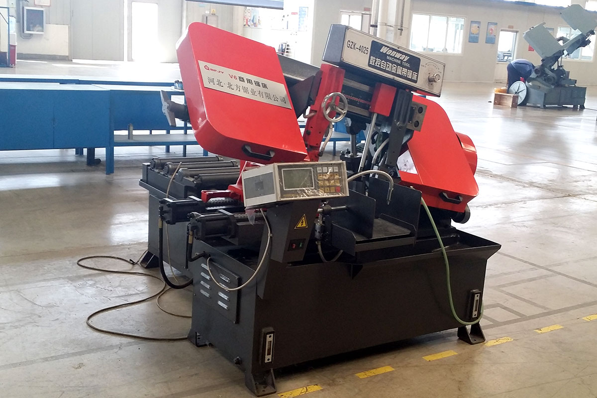 带锯条快速接近工件并自动转入工进锯切速度,抬锯高度随工件大小自动调整,在自动循环过程中可省去很多空车时间。