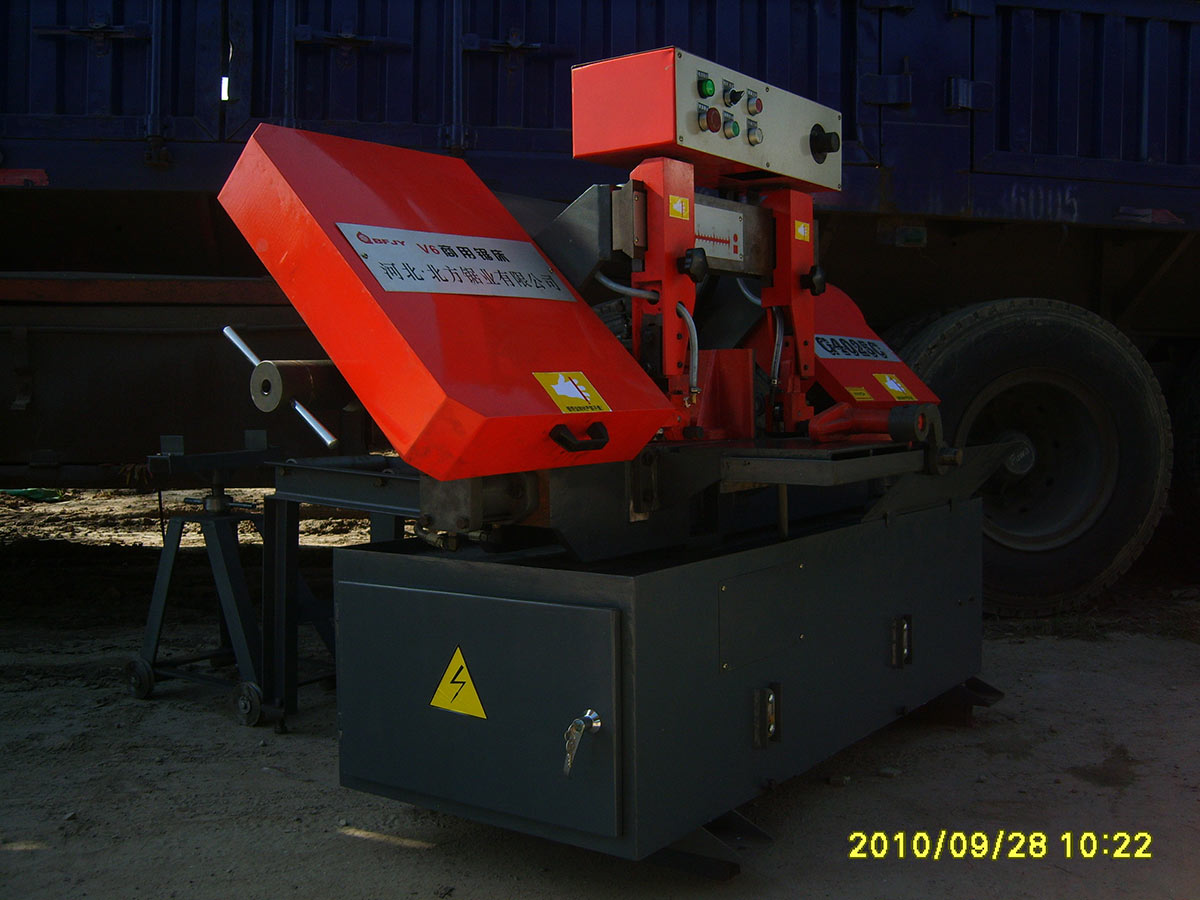 J、随机备件有送料架一件(规格:长750mm 宽 350mm ,3个滚)、被动送料车一件、德国专切定制锯条两根、维修工具一套。