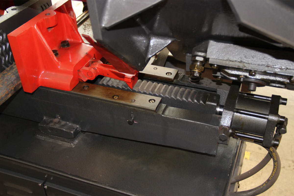 B、能实现上下左右同时进行的液压加紧,可成束锯切。(上压紧装置不在标准配置中,客户根据需要另外选购)。