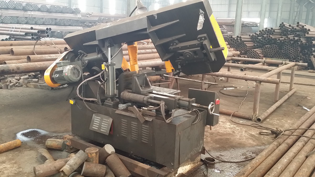 GD4038剪刀式金属带锯床是本公司自行设计开发的新一代带锯床,其特点是剪刀式结构,能更快的以合理的倾斜角切入材料,锯床整体特殊处理,防磨损,精度高,增加锯床使用寿命。